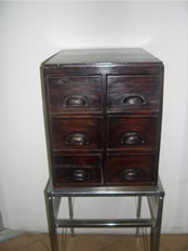 Com 6 gavetas, todo em madeira. Puchadores em concha confeccionado em ferro com detalhes “estilo rococó”. Ficharidade e simetria no desenho. Estilo Eclético. Dimesões:40 X 48 X 59cm.